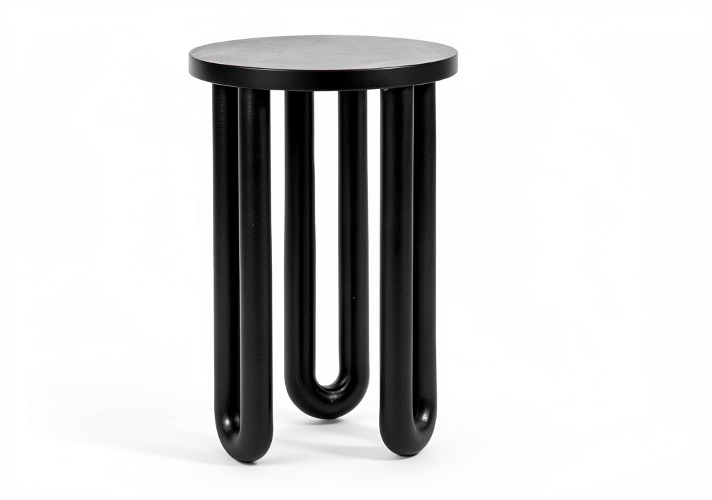 The Kenzo modern round end table is crafted from solid mango wood, featuring a sleek black finish and a unique geometric base with three curved legs. This table measures 14 inches in diameter and 20 inches tall, making it an ideal fit for small spaces. Its glossy surface and straight leg design enhance any modern decor, while the woodgrain texture adds natural elegance. With a weight capacity of 50 pounds, it is built for durability and daily use in indoor settings like living rooms or bedrooms.