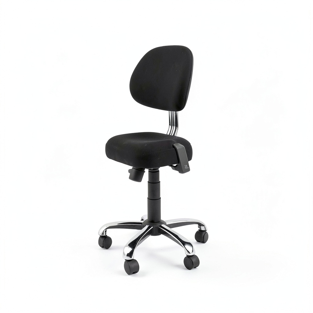 The Spa Source Kenzo Saddle is a hydraulic swivel stool designed for professional and personal use, featuring a robust construction with a chrome base and five caster wheels for smooth mobility on hard floors. It includes a cushioned seat measuring 16″L x 15″W and an adjustable backrest of 13.5″L x 10″W, both crafted for comfort during extended periods. The stool adjusts in height from 24.4″ to 30.7″ and supports up to 385 lbs, with three levers for precise control of backrest height, seat tilt, and overall elevation. Its elegant, solid pattern and round shape come in colors like Black, White, Grey, Brown, and Purple, making it a versatile addition to any indoor setting.
